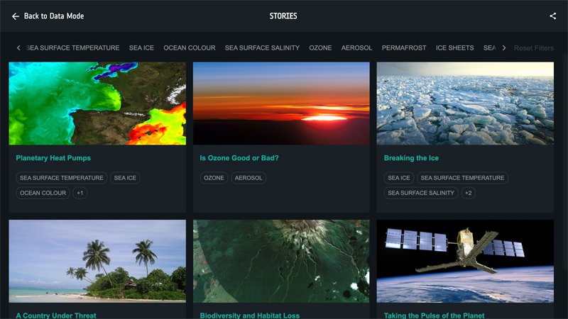 Designed to raise awareness of the role that satellites play in climate monitoring, the ‘Climate from Space’ website can be accessed from a mobile, tablet device or desktop computer. Users can watch decades of global climate change unfold in seconds, pinch and zoom into a region, and compare individual climate variables, side-by-side.