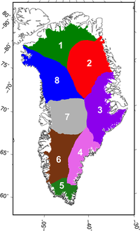 - In the Sermeq Kujalleq (Jakobshavn) hydrological catchment from optical data.