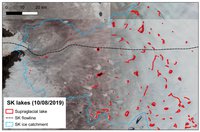 Supraglacial Lakes (SGL) are meltwater lakes that form in depressions at the surface of the ice sheet in the ablation zone. Supraglacial lakes are indicators of surface melt and are a major component of the routing and storage of meltwater at the ice sheet surface. These play an important role in the delivery of meltwater to the base of the ice sheet. The delivery of water to the base of glaciers and ice sheets has been observed to influence basal sliding on a range of spatiotemporal scales, as well as play a pivotal role in the seasonal evolution of the subglacial drainage system.